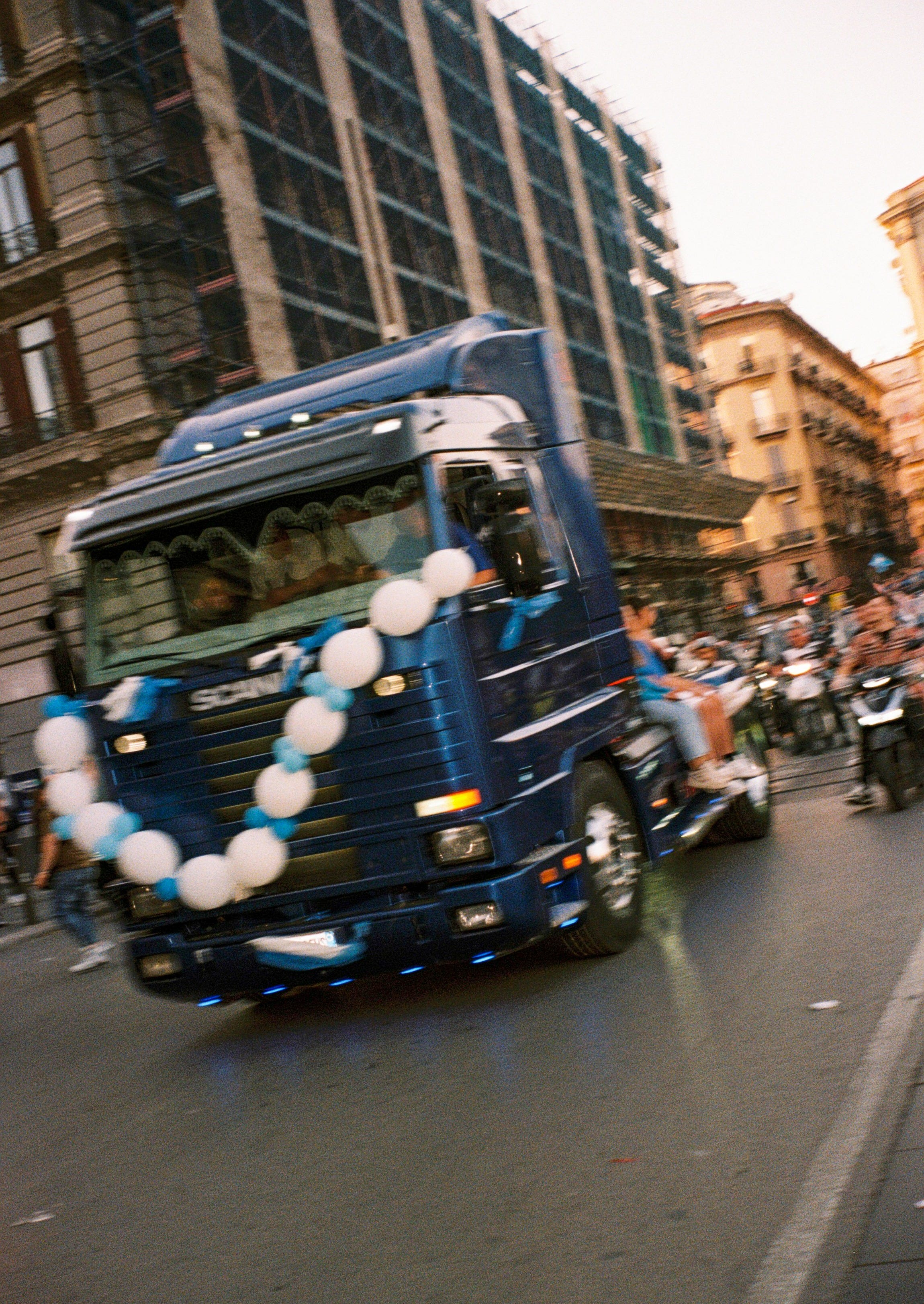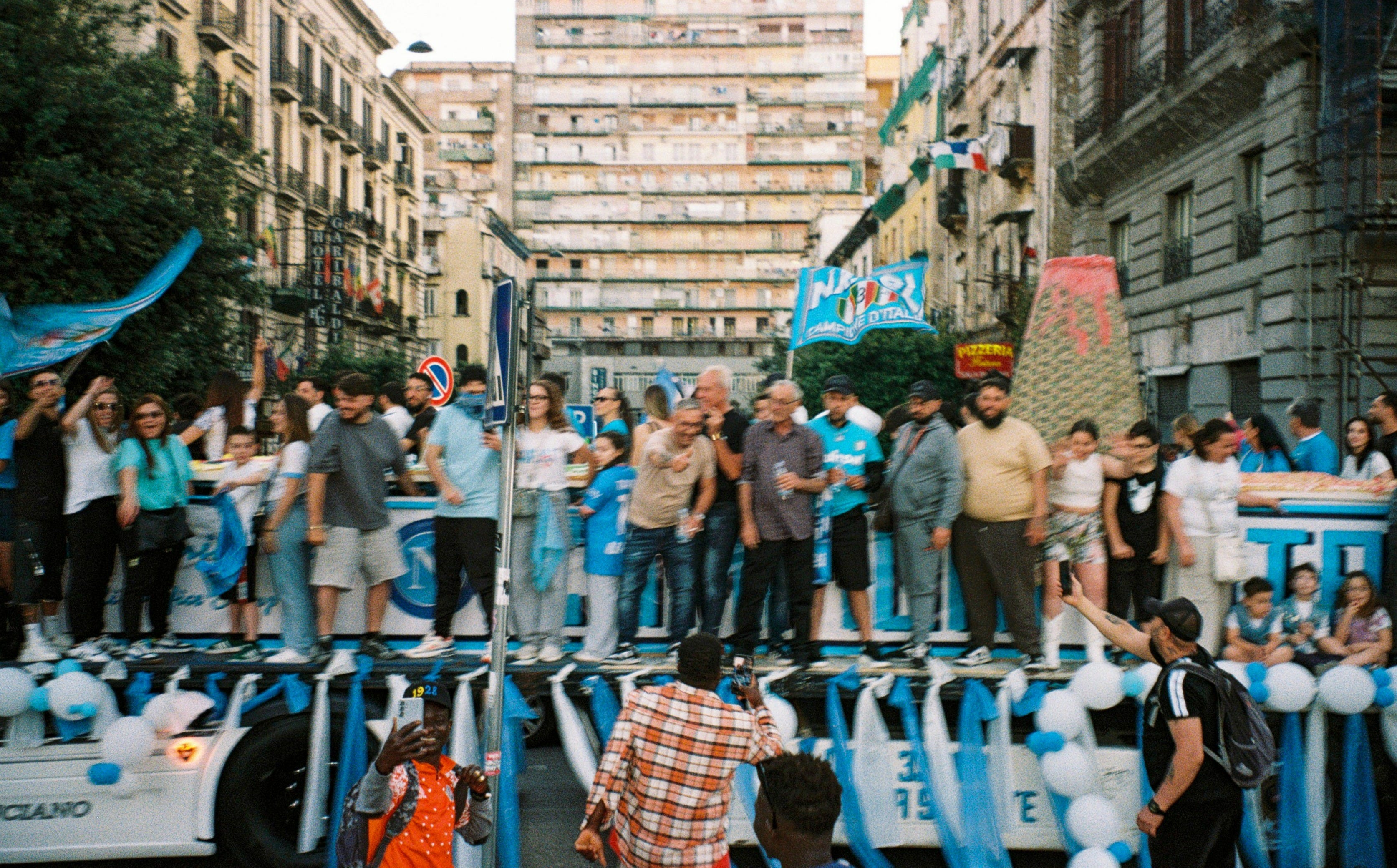 Por eso, si cuando aterrizamos la ciudad se estaba vistiendo de azul y blanco para preparar su inminente victoria, el sábado la ciudad entera explotó en una fiesta de la que era imposible sentirse ajeno, como esos amigos que te lían y te lían para que no se apague la llama del sábado noche (o el domingo mañana). Todo el mundo estaba obligado a celebrar la victoria de Nápoles sobre Italia.